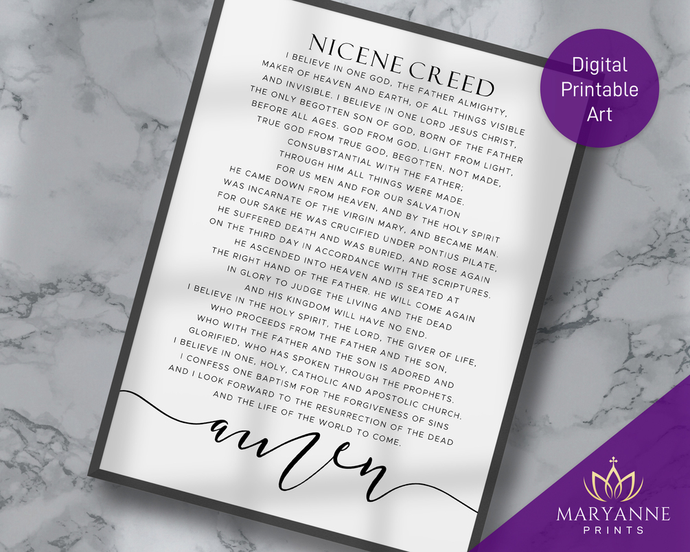 Prayer is an opportunity to spend time with God. The Nicene Creed is a summary of Scripture. It expresses our faith in God who is a Trinity of Persons that has acted in historical events and is revealed definitively in the person of Jesus. Bring some joy, peace, and encouragement into your living space with these modern Catholic Wall Arts. You can also use these printable files to make custom gifts for your family & friends. These make great gifts for Baptism / Baptism Favours, Holy Communion, Confirmation, or as a Keepsake Gift.