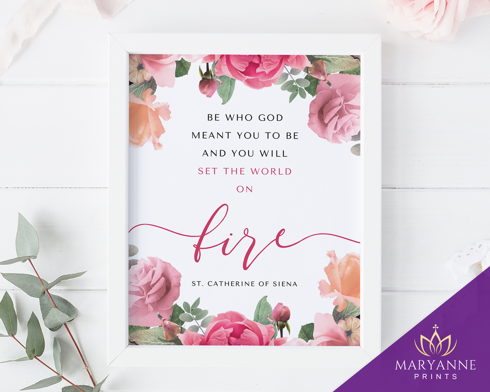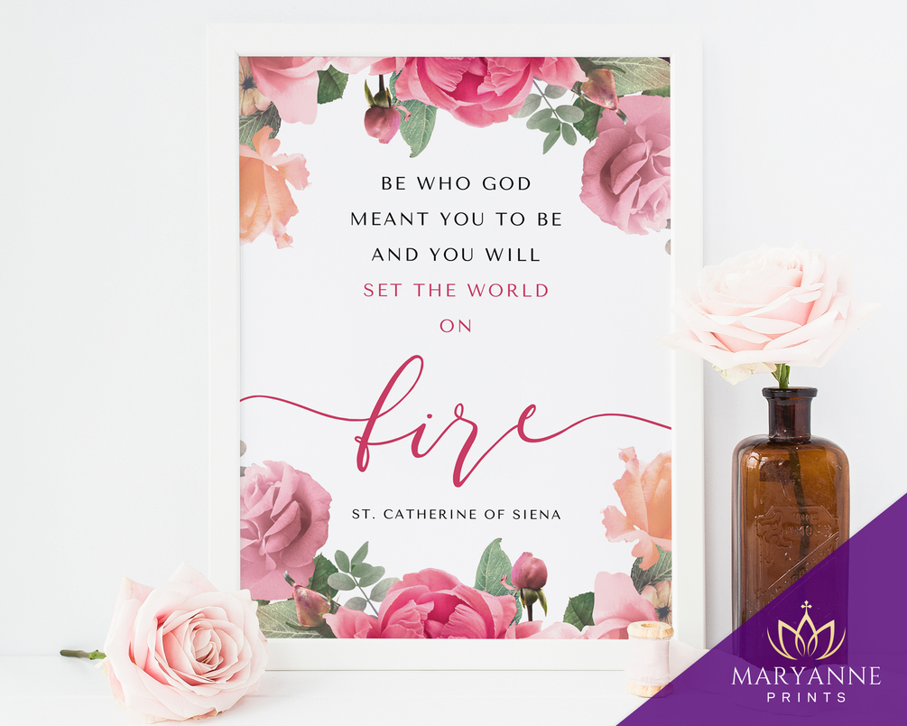 St. Catherine of Siena Quote, Be who God meant you to be, Catholic Saint Quotes, Catholic Wall Art, Catholic Printable, Confirmation Gifts