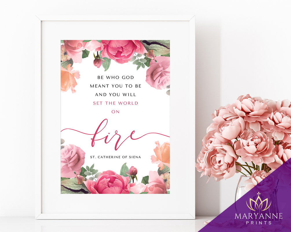 St. Catherine of Siena Quote, Be who God meant you to be, Catholic Saint Quotes, Catholic Wall Art, Catholic Printable, Confirmation Gifts